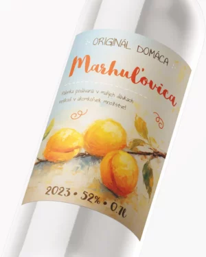 Originálna samolepiaca etiketa na pálenku s motívom pre Marhuľovicu.