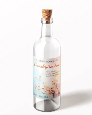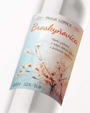 Originálna samolepiaca etiketa na pálenku s motívom pre Broskyňovicu.