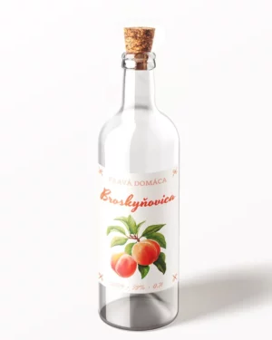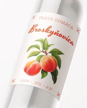 Originálna samolepiaca etiketa na pálenku s motívom pre Broskyňovicu.