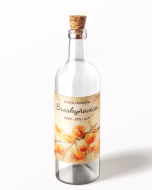 Originálna samolepiaca etiketa na pálenku s motívom pre Broskyňovicu.