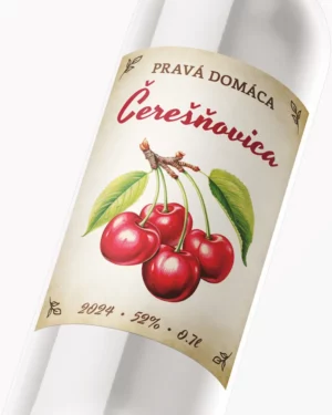 Originálna samolepiaca etiketa na pálenku s motívom pre Čerešňovicu.