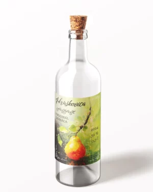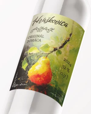 Originálna samolepiaca etiketa na pálenku s motívom pre Hruškovicu.