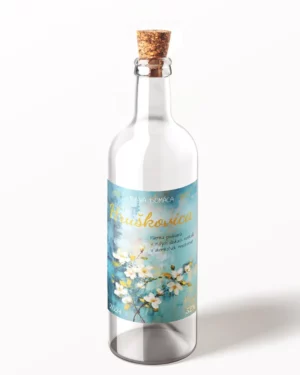 Originálna samolepiaca etiketa na pálenku s motívom pre Hruškovicu.