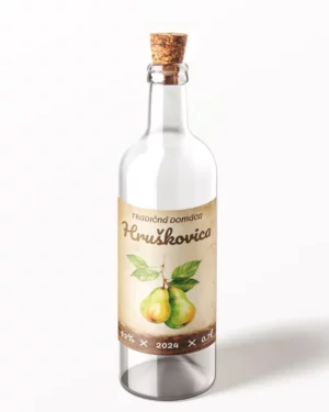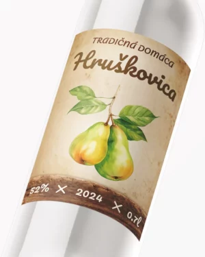 Originálna samolepiaca etiketa na pálenku s motívom pre Hruškovicu.