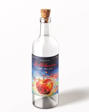 Originálna samolepiaca etiketa na pálenku s motívom pre Jabĺčkovicu