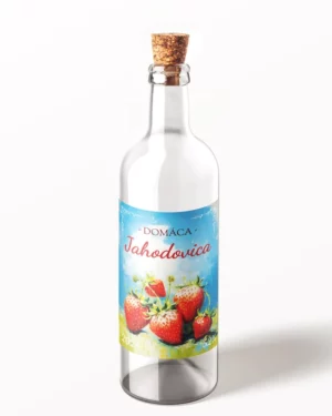 Originálna samolepiaca etiketa na pálenku s motívom pre Jahodovicu.