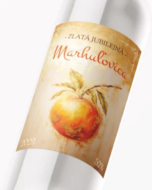 Originálna samolepiaca etiketa na pálenku s motívom pre Marhuľovicu.