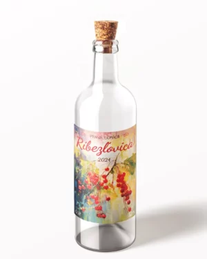 Originálna samolepiaca etiketa na pálenku s motívom pre červených ríbezlí.