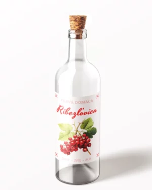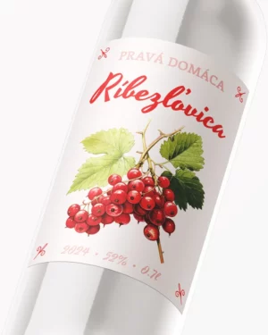 Originálna samolepiaca etiketa na pálenku s motívom pre červených ríbezlí.