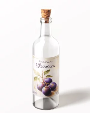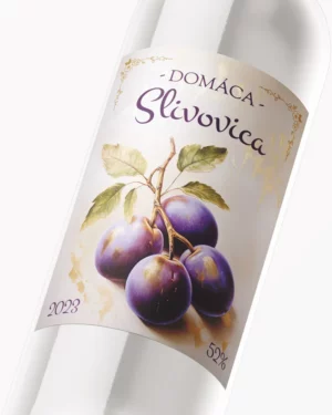 Originálna samolepiaca etiketa na pálenku s motívom pre Slivovicu.
