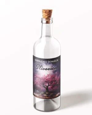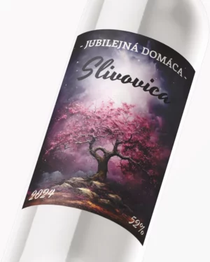 Originálna samolepiaca etiketa na pálenku s motívom pre Slivovicu.