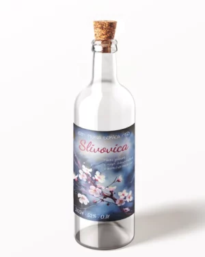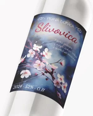 Originálna samolepiaca etiketa na pálenku s motívom pre Slivovicu.