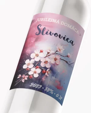 Originálna samolepiaca etiketa na pálenku s motívom pre Slivovicu.