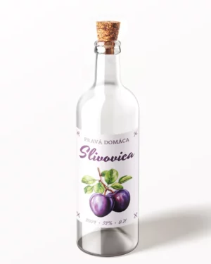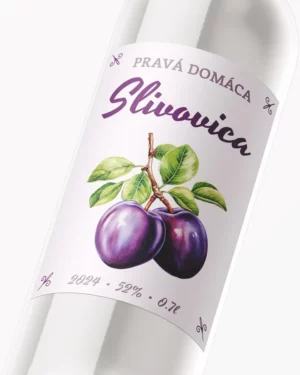 Originálna samolepiaca etiketa na pálenku s motívom pre Slivovicu.