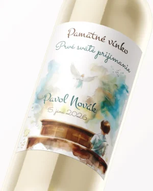 Etikety na výslužkové víno alebo pálenku zo sviatosti krstu, prijímania, konfirmácie – motív 13 chlapec