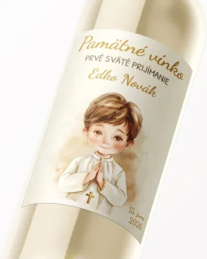 Etikety na výslužkové víno alebo pálenku zo sviatosti krstu, prijímania, konfirmácie – motív 14 chlapec