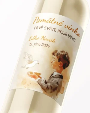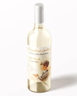 Etikety na výslužkové víno alebo pálenku zo sviatosti krstu, prijímania, konfirmácie – motív 15 chlapec