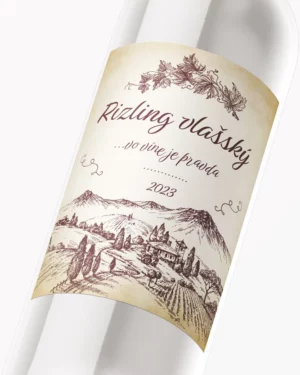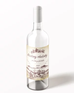 Originálna samolepiaca etiketa na víno, tlač s vlastným textom. Etikety na víno, svetlá verzia. Expresné spracovanie etikiet vo vysokej kvalite.