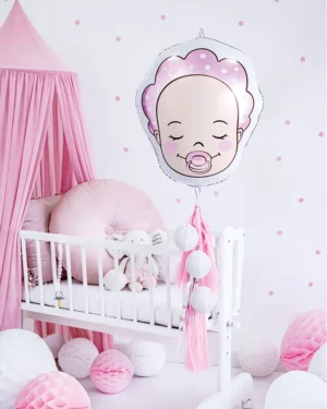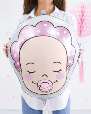 Fóliový balónový v tvare hlavy bábätka – dievča. Vyrobené z kvalitného materiálu, samo uzatvárací mechanizmus po nafúknutí.