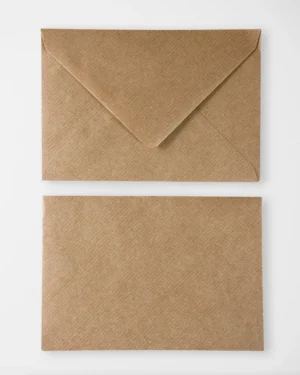 Hnedé rebrované obálky v rozmere 133x184mm, vhodné na všetky druhy oznámení a pozvánok v štandardnom rozmere 5×7″ (127x178mm). Formát obálok 133x184mm je štandardný americký formát, ktorý je strednou veľkosťou medzi štandardnými európskymi formátmi C6 (114x162mm) a C5 (162x229mm). Obálka je vyhotovená z kvalitného farebného  papiera s gramážou 100g/m2.