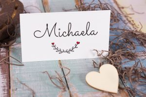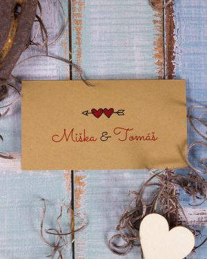 Tieto svadobné menovky s kraft motívom sú dostupné v dvoch farebných kombináciách.