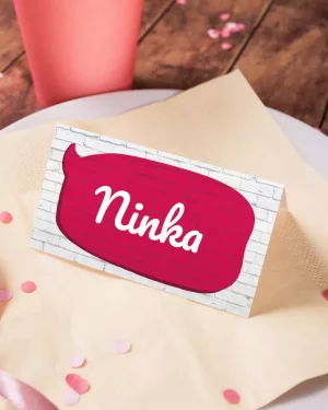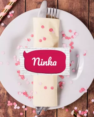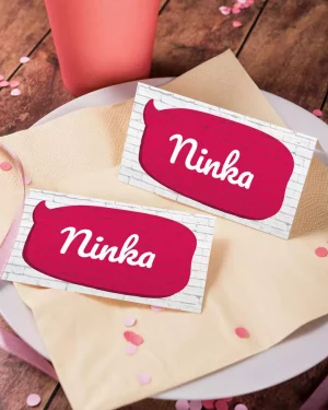 Menovky s vašimi menami sú vytvárané podľa vzoru na fotografiach vyššie. Ak si prajete zapracovať špeciálne požiadavky (napr. iný typ alebo farbu písma, umiestnenie mena a pod.) prosím napíšte nám požiadavky do poznámky pred odoslaním objednávky alebo dodatočne na mail info@oznamimto.sk.