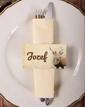 Táto menovka na stôl ladí s motívom pozvánky Poľovník, avšak môžete si ju objednať aj s ktorýmkoľvek iným motívom alebo aj samostatne.