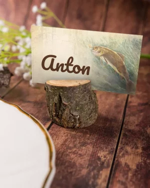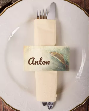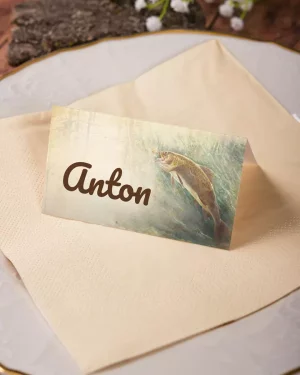 Táto menovka na stôl ladí s motívom pozvánky Rybár, avšak môžete si ju objednať aj s ktorýmkoľvek iným motívom alebo aj samostatne.