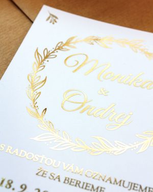 Svadobné oznámenia s metalickou potlačou a motívom svadobného bicykla. Oznámenia sú tlačené na špeciálny extra hrubý matný 350g papier.