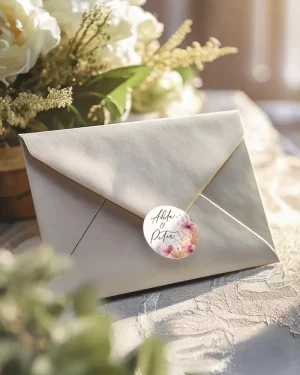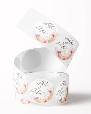 Nálepky sú vhodné ako: nálepky na zapečatenie obálok ♥ nálepky na mini darčeky. Na etiketu tejto veľkosti ( Ø 3,5cm ) odporúčame umiestniť len malé množstvo textu - mená resp. iniciály. V cene produktu sú nálepky s Ø 3,5cm s vaším vlastným textom. V cene nie sú priamo zahrnuté obálky (obálka na produktovej fotografií je len vzorová). K tomuto produktu si môžete objednať ktorékoľvek obálky v rozmere z našej ponuky Etikety sú vyrobené z PVC samolepky s vodeodolnou potlačou. Sú vhodné na použitie v interiéri aj exteriéri a s trvanlivosťou min. 4 roky. Pred lepením odporúčame z povrchu zotrieť akékoľvek nečistoty.. Pre lepení na sklo je vhodné povrch odmastiť.Pozrite si aj naše kategórie doplnkov a zlaďte vašu výzdobu farebne aj štýlovo: