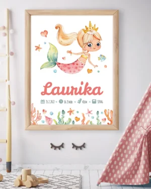 Obraz do detskej izby alebo a plagát s detským motívom. Obraz je vyrobený na mieru s menom, podľa vášho zadania môže ale aj nemusí obsahovať ďalšie údaje ako dátum a čas narodenia, výšku a váhu.