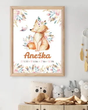 Obraz do detskej izby s detským motívom. Obraz je vyrobený na mieru s menom, podľa vášho zadania môže ale aj nemusí obsahovať ďalšie údaje ako dátum a čas narodenia, výšku a váhu.