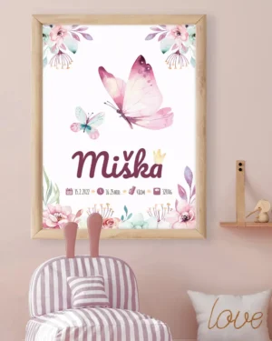 Obraz do detskej izby alebo a plagát s detským motívom. Obraz je vyrobený na mieru s menom, podľa vášho zadania môže ale aj nemusí obsahovať ďalšie údaje ako dátum a čas narodenia, výšku a váhu.