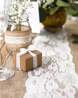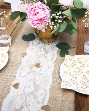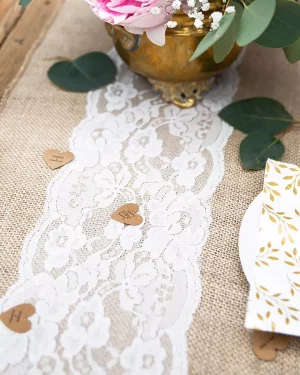 Obrus s čipkou s kvetmi v strednej časti dodá vašej slávnosti neopakovateľnú romantickú atmosféru. Obrus je určený na dekorovanie stredovej časti stola. Využijete ho nie len pri svadobnej výzdobe ale aj pri rôznych iných príležitostiach ako rodinné oslavy.