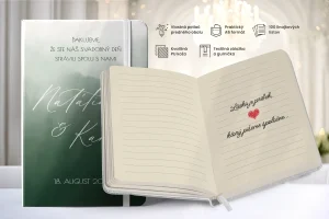 Vytvorte si svoj vlastný svadobný zápisník a prekvapte hostí krásnym a osobným darčekom, ktorý si zamilujú. Personalizovaný, elegantný a pripravený na mieru!