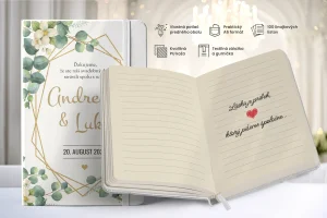Personalizovaný svadobný zápisník pre hostí – vzor Greenery 03