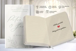Vytvorte si svoj vlastný svadobný zápisník a prekvapte hostí krásnym a osobným darčekom, ktorý si zamilujú. Personalizovaný, elegantný a pripravený na mieru!