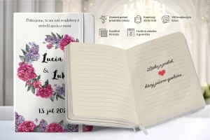 Personalizovaný svadobný zápisník – unikátny darček pre hostí s vlastným textom. Elegantná a praktická pamiatka zo svadby v ideálnom rozmere  92x142mm (cca A6 formát).