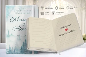 Personalizovaný svadobný zápisník – unikátny darček pre hostí s vlastným textom. Elegantná a praktická pamiatka zo svadby v ideálnom rozmere  92x142mm (cca A6 formát).