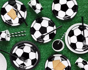 Veľký set s dekoráciami ktorý obsahuje všetko čo potrebujete na skvelú výzdobu v hravom a pestrom futbalovom štýle. Sada s dekoráciami obsahuje 60 samostatných dekorácií ako balóny, servítky, poháriky, taniere, slamky, krabičky na popcorn.