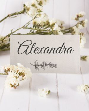Menovky je možné objednať v dvoch veľkostiach - 90x50mm (vhodné napr. do stojanu) alebo 90x100mm s prehnutím na polovicu (vhodné na voľné postavenie n stôl).