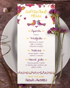 Svadobné menu v motíve Pestré vtáčiky vyrobené na mieru pre Vás je elegantnou ukážkou toho, na čo sa môžu hostia a ich chuťové poháriky tešiť na Vašej svadobnej hostine.
