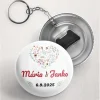 Hľadáte darček, ktorý bude nielen štýlový, ale aj užitočný? Svadobné otvárače sú ideálnym riešením! Tento elegantný suvenír slúži ako otvárač na fľaše a zároveň kľúčenka, vďaka praktickej retiazke, ktorá umožňuje jeho jednoduché pripnutie na kľúče. Každý otvárač je personalizovaný – môžete naň umiestniť mená novomanželov, dátum svadby alebo iné jedinečné texty dizajn podľa vašich predstáv.