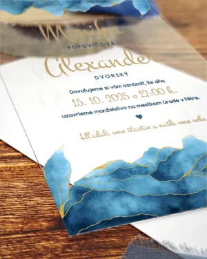 Transparentné svadobné oznámenia Abstrakt 04 modrá