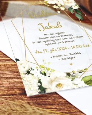 Transparentné svadobné oznámenia Biele ruže 03