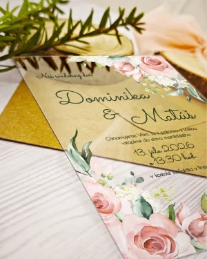Transparentné svadobné oznámenia Kvitnúce ruže
