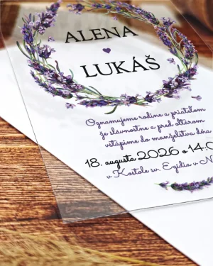 Transparentné svadobné oznámenia Levanduľa 02