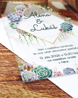 Transparentné svadobné oznámenia s motívom rastlín – Sukulentov