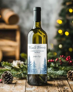 Elegantné vianočné etikety na fľaše s jemným akvarelovým motívom borovíc v modrastých odtieňoch, ktoré vyvolávajú dojem zimnej rozprávky a pokoja. Dizajn je jednoduchý, no zároveň jemné línie pôsobia profesionálne a nadčasovo. Tieto etikety sú ideálne pre firmy z oblasti ekológie, cestovného ruchu alebo wellness centier, ktoré chcú zdôrazniť spojenie s prírodou a udržateľnosťou. Vianočné etikety ponúka možnosť personalizácie zdarma cez online editor – pridanie loga alebo úprava textu.