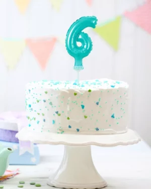 Zápich do torty balón číslo 6 svetlo modrý 13 cm